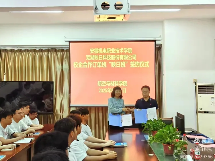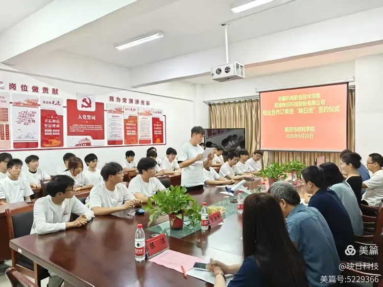 2025年5月23日,安徽機(jī)電職業(yè)技術(shù)學(xué)院與蕪湖映日科技股份有限公司聯(lián)合舉辦的訂單班開班儀式在航空與材料學(xué)院隆重舉行。校企雙方代表、訂單班全體師生共同參與,標(biāo)志著雙方在產(chǎn)教融合、協(xié)同育人領(lǐng)域邁出堅(jiān)實(shí)一步。